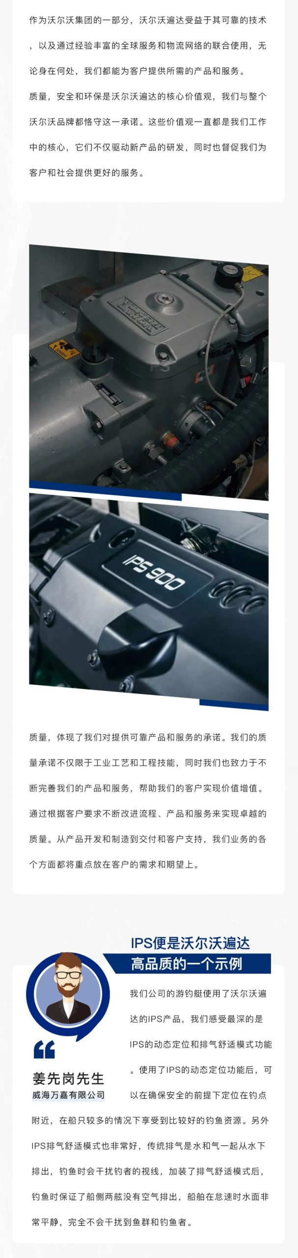 海洋是文明的氤氳,無數(shù)藍(lán)色夢想在這里找到航向。在這個(gè)乘風(fēng)而上的時(shí)代,沃爾沃遍達(dá)始終堅(jiān)持秉持安全、質(zhì)量、環(huán)保的發(fā)展理念,為海洋產(chǎn)業(yè)提供更強(qiáng)的動力,以深耕動力行業(yè)的實(shí)力與信心,在減排的綠色革新道路上奮發(fā)而行。沃爾沃遍達(dá)愿與您同行,在一片蔚藍(lán)里讓夢徜徉,在一方沃土上尋光遠(yuǎn)航!
